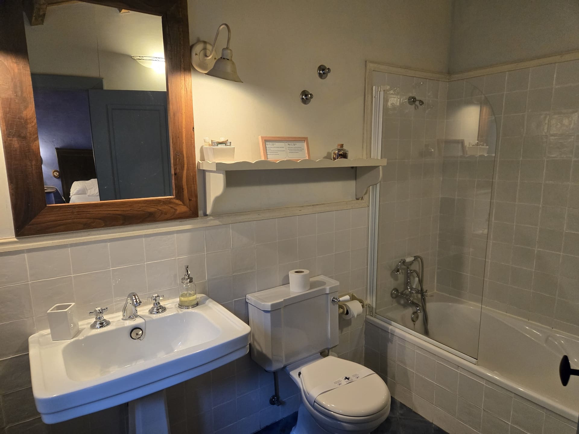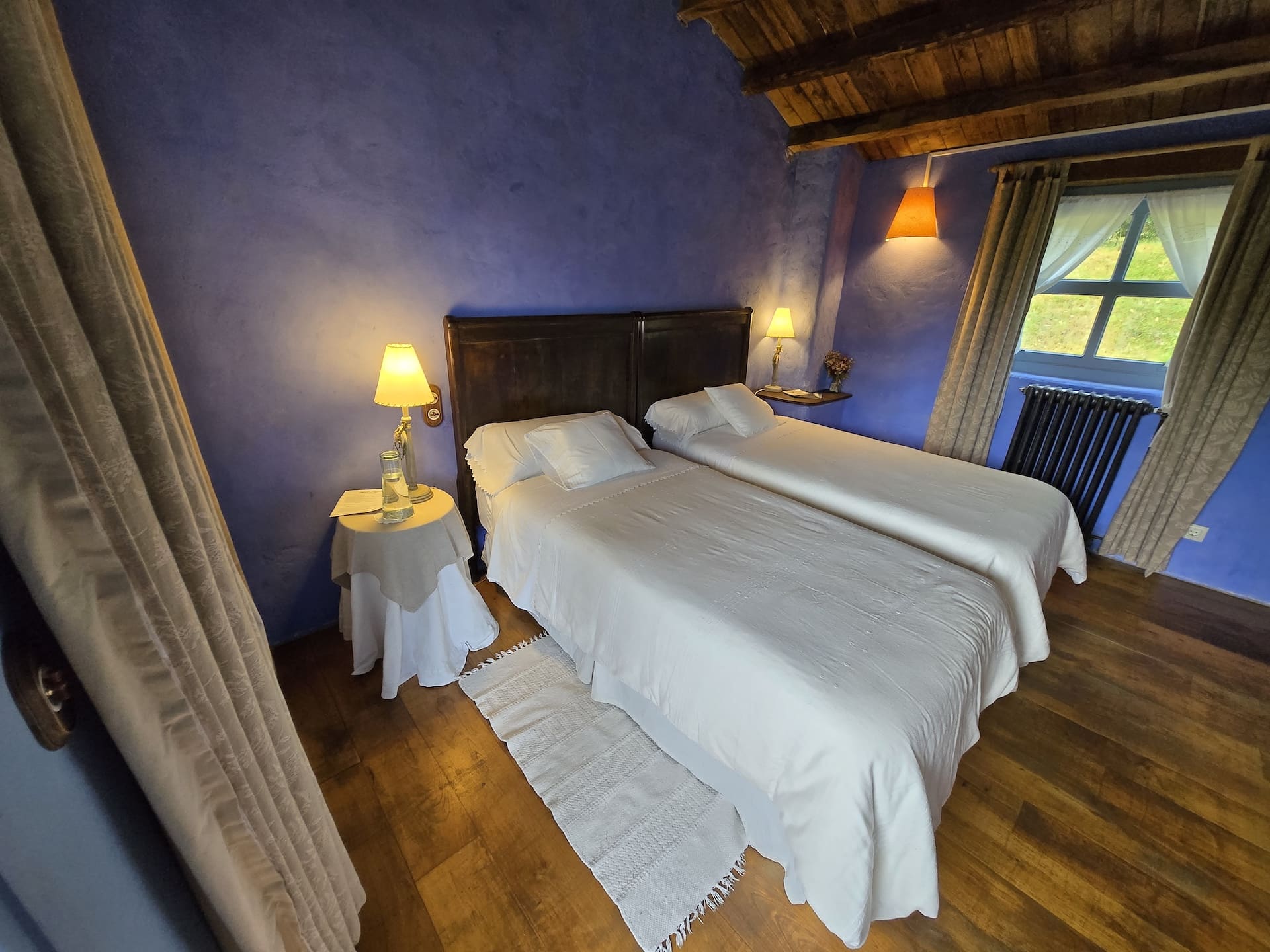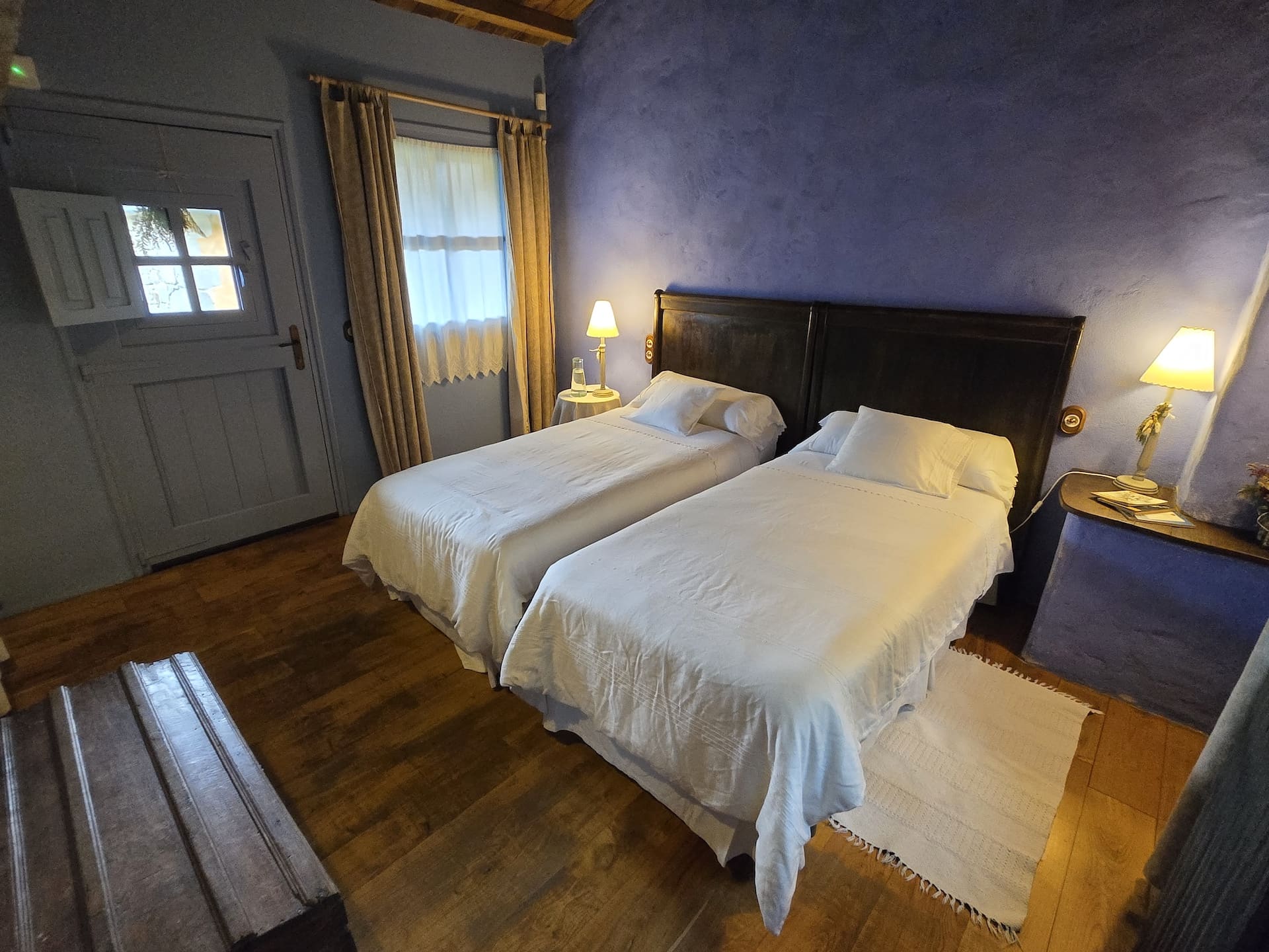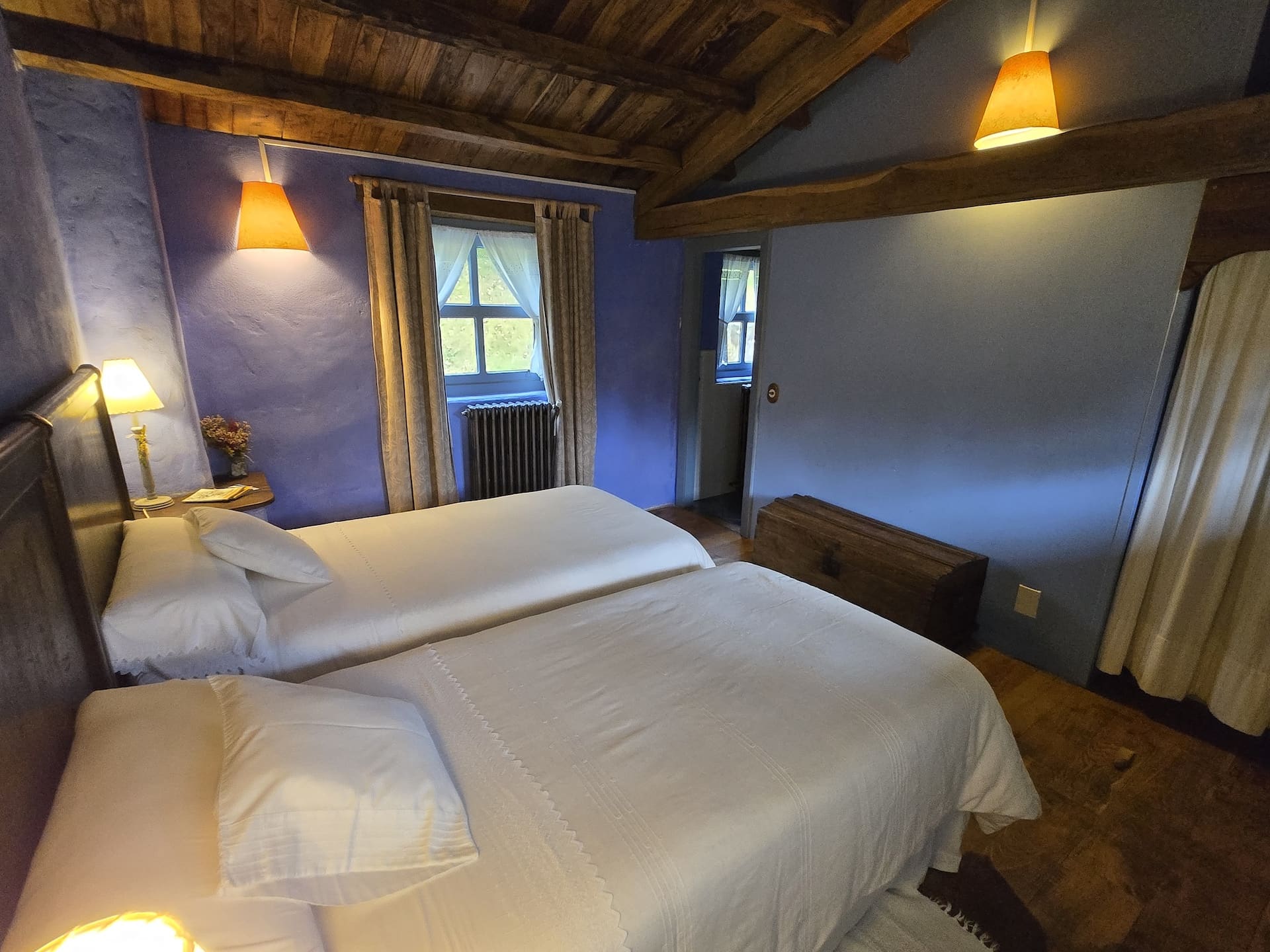 La habitación «Agua» de Casa do Castelo de Andrade destaca por el tono malva azulado de sus paredes, que es realmente precioso. Es la única de las diez habitaciones de la Casa que tiene dos camas gemelas de 90 x 190 cm, ideal para quienes prefieren dormir juntos, pero separados. El baño es completo, dentro de la habitación y tiene bañera. También tiene un balcón común con las habitaciones Fuego y Aire.